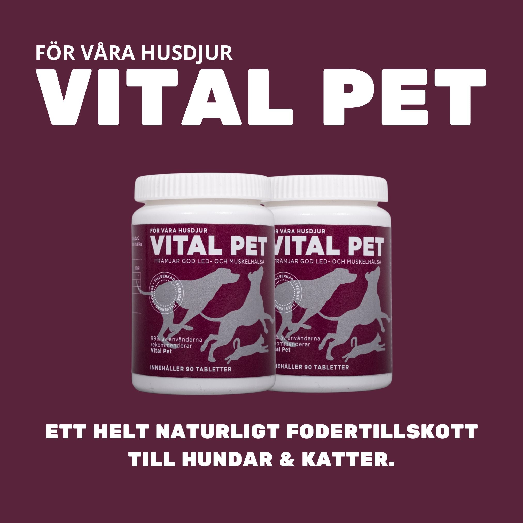 Nu finns Vital Pet! Naturligt fodertillskott för ditt husdjur. Fodertillskottet Vital Pet innehåller aminosyrorna L-Arginin och L-Citrullin som är byggstenarna för kroppen att bilda Kväveoxid. Dessa två tillsammans med Rosenrotextrakt är Vital Pet.