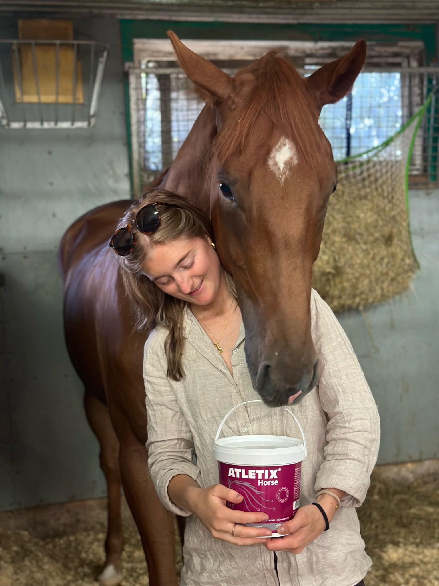 "I have now been using Atletix Horse for over a year on quite a few of my horses, and one of the biggest effects I’ve noticed since I started is that they feel much softer and more flexible in their bodies after long journeys! Those first days when the horses feel a bit stiff are actually completely gone—no more of that! And another very interesting thing that happened a few weeks ago is that I have a horse that has some shivering and locking. One day, we couldn’t lift the left hind leg, despite trying different methods. It felt like some kind of locking was causing it. Riding was no problem at all, but getting him to lift that hind leg in the stable aisle was really difficult. I decided to put him on Atletix Horse, and after just a few days, it was no problem at all to lift the hind leg! Besides that, I noticed a big difference in riding. He can feel a bit stiff at the beginning of a session, but ever since he started on Atletix, he’s felt very good and supple right from the start." — Johanna Due-Boje